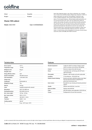 Coldline Master kjøleskap A50/1MV - m/glassdør - 60Hz - B630