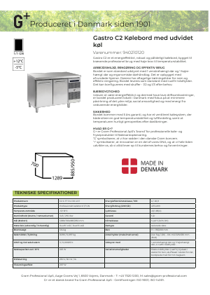 Gram Professional G+ kjølebenk GASTRO 2-dører u-topplate
