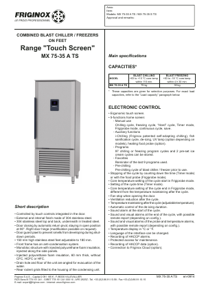 - blåsekjøling: fra +63 °C til +10 °C kjernetemperatur i produktet på mindre enn 2 timer.