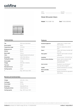 Coldline Master frysebenk 2D - sentralkj. - topp m-oppkant