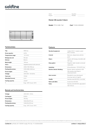 Coldline Master frysebenk 4D - sentralkj. - topp u-oppkant