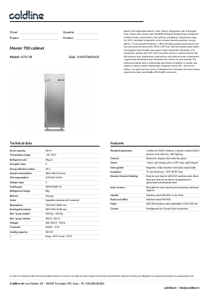 Coldline Master fryseskap A70/1B - GN2/1 - B740