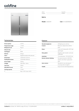 Coldline dobbelt roll-in kjøleskap J160-2M - GN2-1 - B1620
