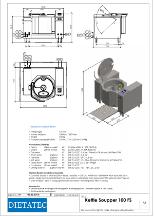 Dieta Soupper kokegryte FS m-røreverk 100 liter - 230V