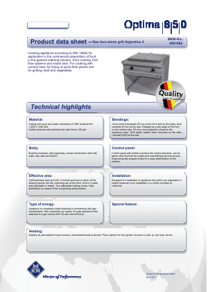 UTGÅTT**MKN Optima 850 CharcoalgrillARGENTINA2- 16kW 850-700