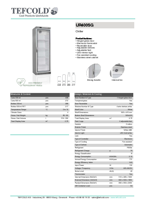 Tefcold kjøleskap glassdør rustfritt 350ltr UR400SG