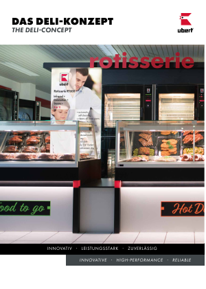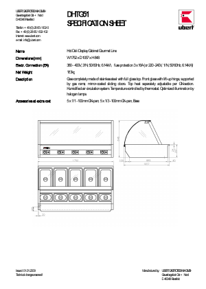 Varmeskap Hot Deli Gourmet Line produseres i rustfritt stål med helt, overliggende frontglass som er topphengslet og som holdes i åpen posisjon av gassdempere.