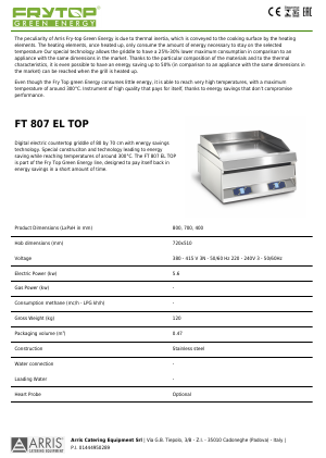 Arris flatgrill FT 807 EL - bordmodell - 230V - B800