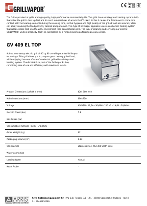 Arris GrillVapor GV 409 EL - bordmodell - 230V - B420