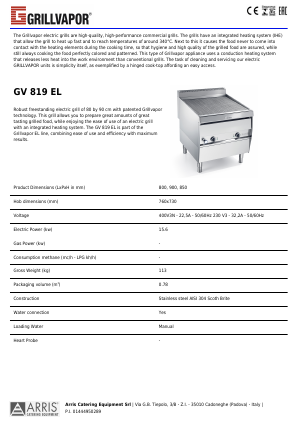 Arris GrillVapor GV 819 EL - gulvmodell - 230V - B800